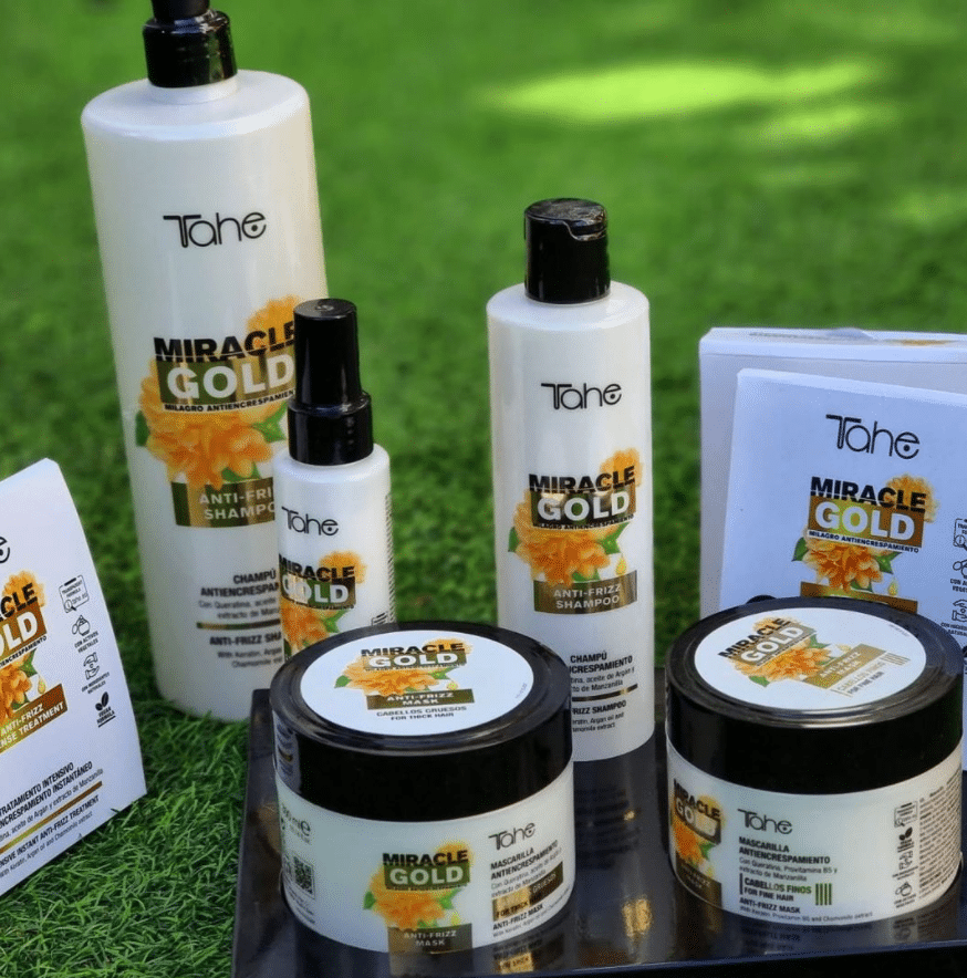 Poznaj profesjonalną kuracje Tahe z linii MIRACLE GOLD ANTI FRIZZ, stworzone z myślą o walce z puszeniem się włosów – zarówno cienkich, jak i grubych. Produkty wegańskie, bogate w składniki aktywne, zapewniają intensywne nawilżenie, wygładzenie i blask już od pierwszego użycia.
